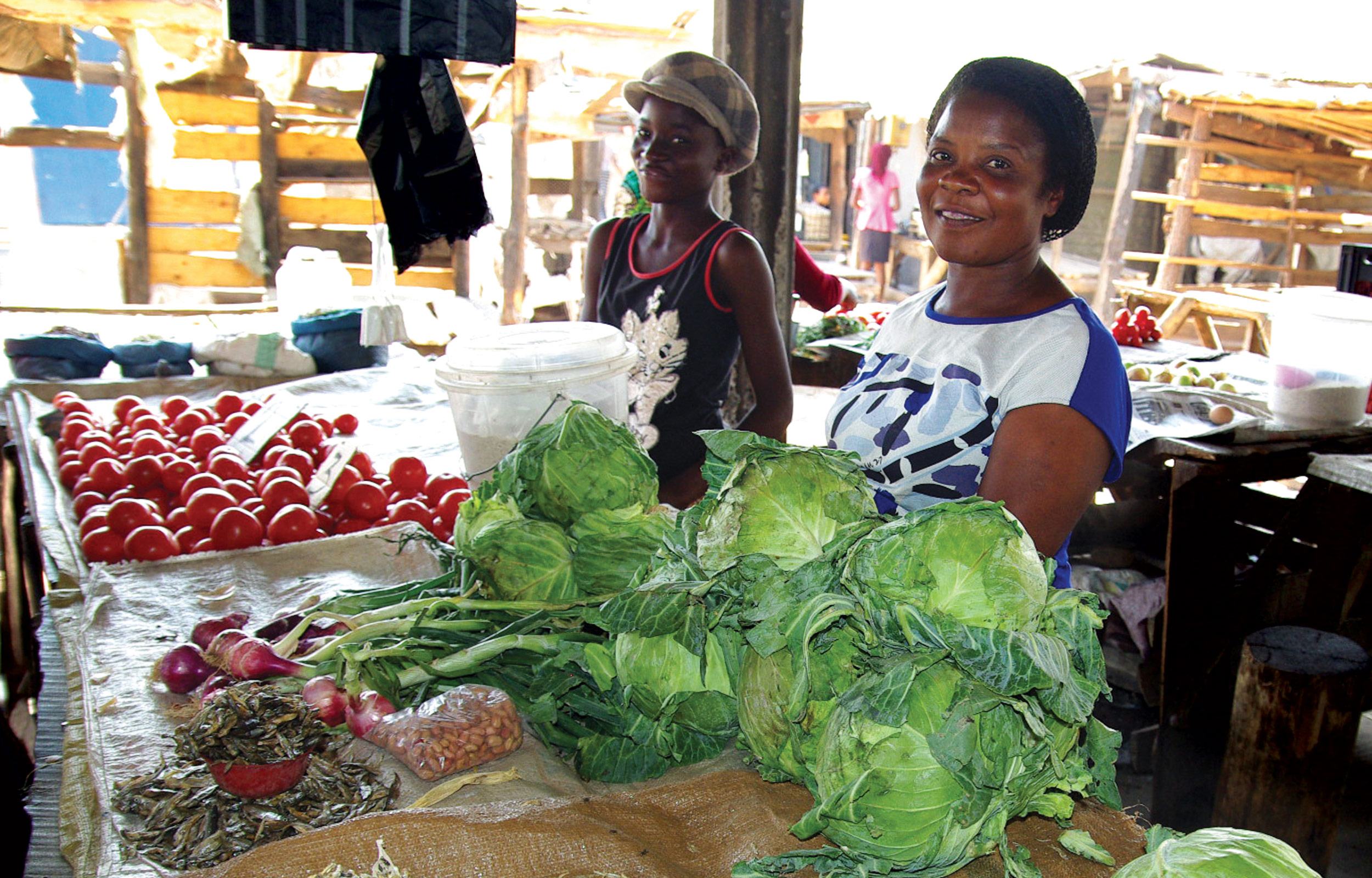 Grace stands at her vegetable and poultry sales business. She received an Income Generation Activity (IGA) grant from her church, Kawama Evangelical Church in...